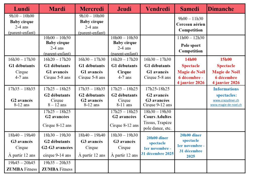 Les cours se déroulent selon les périodes d’école du Canton de Vaud.